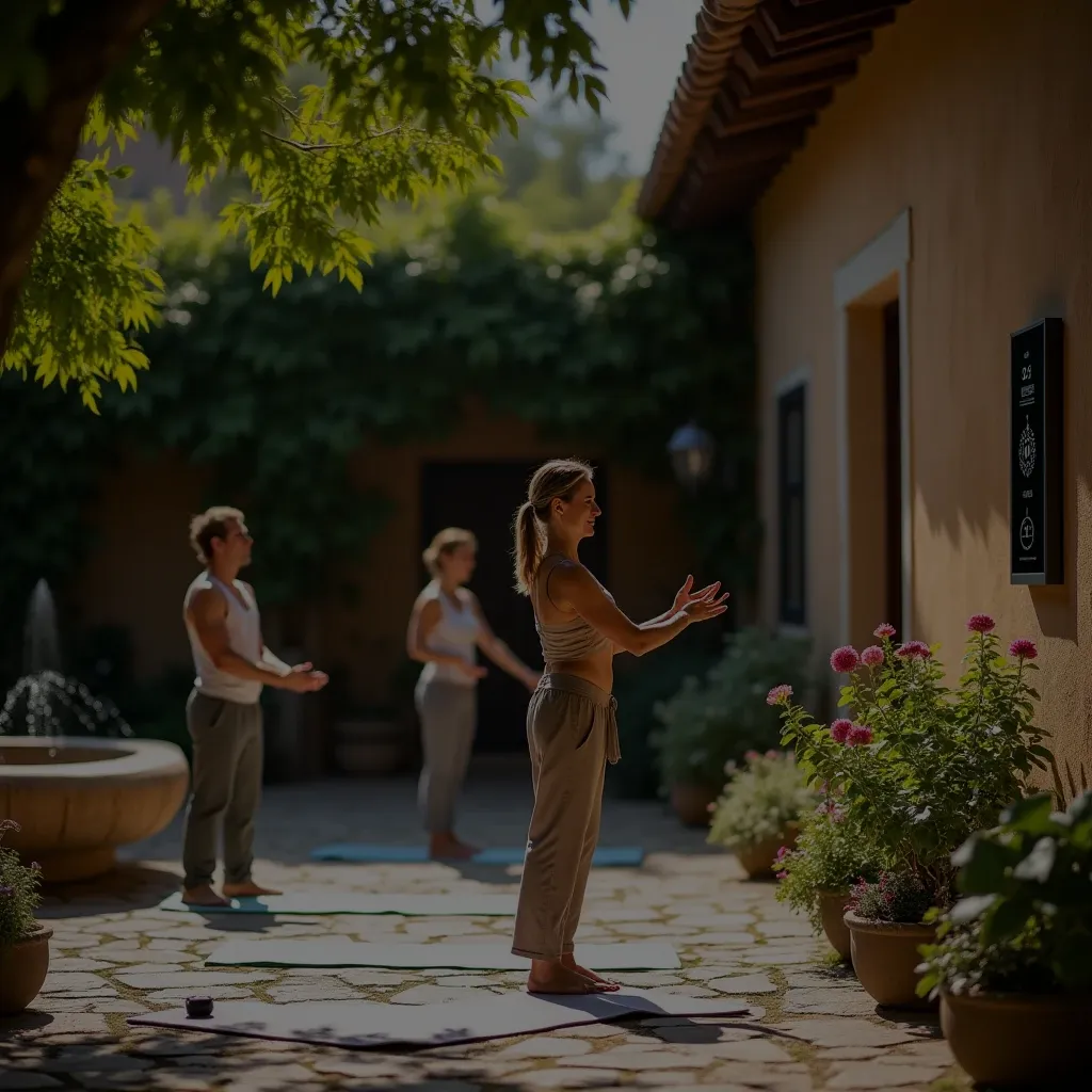 Sesiones para todos los niveles, ejercicios de respiración, enfoque en la relajación.